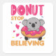 O coala senta-se numa rosquinha com aspersão colorida. Os coalas são animais bonitos para crianças. Para amigos que amam coalas e rosquinhas a combinação perfeita. Para quem ama rosquinhas.