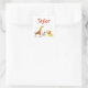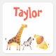 Um adesivo de safari divertido, este item apresenta uma girafa de aquarela, zebra e leão. Há uma modelo para personalizar seu nome no topo em vermelho. Personalize o seu hoje!