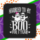 Este divertido design de aniversário de casamento de Halloween é perfeito para um casal casado que celebra 1 ano de casamento com o seu BOO! Divertido design de casal para uma festa de aniversário de casamento de 1 ano com tema de outubro ou Halloween. Apresenta a citação engraçada de aniversário de 1 ano 'Casado com o meu BOO há 1 Ano!' com noiva e noivo fantasmas e gráficos de morcego. Perfeito para um aniversário de casamento de Halloween, aniversário de casamento de outubro ou qualquer festa de aniversário de casamento de 1 ano da temporada assustadora!