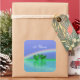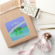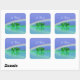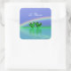Adesivos quadrados com minha arte digital de dois corações esmeralda flutuando na água sob um arco-íris com texto que diz "55 Anos".