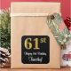 Este elegante, sofisticado e na moda, design de adesivo de aniversário apresenta um grande número ordinal "61ruas" com uma imitação/aparência falsa de ouro, juntamente com a mensagem de saudação de aniversário "Feliz aniversário de 61ruas", e um nome editável em uma letra estilo script. O fundo é preto colorido. Os adesivos luxuosos como este poderiam ser usados para embrulhar um presente de aniversário ou presente dado a alguém que comemora o seu sessenta primeiro aniversário, ou talvez possam ser entregues aos convidados numa festa de aniversário. [~Z0000517]