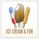 Pau quadrado para crianças com ilustrações de picolés de sorvete deliciosos. O Sticker Quadrado seria perfeito para uma festa de aniversário num dia quente.