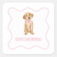 Aniversário do recuperador do ouro de filhotes de pré-disquete com arco rosa e quadro ondulado.