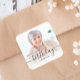 Etiquetas de festa de aniversário modernas com fotos personalizadas. Substitua facilmente a imagem de exemplo por uma foto do convidado de honra. A palavra "aniversário" aparece no elegante roteiro preto de manuscrito. Personalize o texto com o nome e o ano de aniversário na fonte de sans serif negra. Uma camada branca de gradiente ajuda a tornar o texto pop.