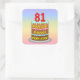 Este design de autocolante quadrado alegre e divertido aniversário apresenta uma representação em estilo cartoon de um bolo de aniversário de três níveis, com velas em forma de número no topo, mostrando a idade "81", juntamente com a mensagem "FELIZ 81RUAS BIRTHDAY", e um nome de destinatário personalizado. O fundo tem um espectro de arco-íris pastel de várias cores inspirado em um padrão de gradiente. Os autocolantes temáticos de aniversário otimistas como estes podem ser usados ou entregues numa festa para alguém que comemora o seu oitavo primeiro aniversário, ou talvez usados no empacotamento de presentes ou na preparação de convites para tal evento. [~Z0000624]