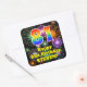 Este alegre e alegre design do adesivo quadrado com tema de aniversário apresenta um grande número de "81" com um padrão de inspiração colorida do espectro do arco-íris. Também apresenta a mensagem "Feliz aniversário de 81ruas", e um nome personalizado. O fundo apresenta um padrão inspirado em fogos de artifício celebratórios coloridos e em explosão. Tangas vibrantes, divertidas e personalizadas como esta podem ser dadas como presentes de aniversário, ou usadas enquanto embrulham presentes, ou talvez usadas como decorações de festas de aniversário quando celebram o aniversário de 81ruas de alguém. [~Z0000579]