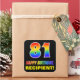 Este design de etiqueta de aniversário divertida, alegre e colorida apresenta um grande número "81" e a mensagem "FELIZ ANIVERSÁRIO", ambos tendo um gradiente de padrão inspirado no espectro do arco-íris, junto com um nome ousado e amarelo editável. O fundo é preto colorido. Os adesivos temáticos de aniversário divertidos como este podem ser usados ao embrulhar um presente ou presente para alguém que comemora seu oitavo aniversário, ou talvez seja entregue aos convidados em uma festa de aniversário. [~Z0000480]