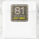 Este design de autocolante quadrado, rústico, divertido e inspirado no jardim, mostra a mensagem "Feliz aniversário de 81ruas" e um nome de destinatário editável. O grande número "81" e a borda apresentam ícones de flor. O fundo tem uma imitação/padrão falsa de madeira. Os autocolantes como estes podem ser usados ou distribuídos numa festa de aniversário realizada para alguém em comemoração do seu oitenta e primeiro aniversário, ou talvez usados na preparação de convites ou presentes para tal evento. [~Z0000654]