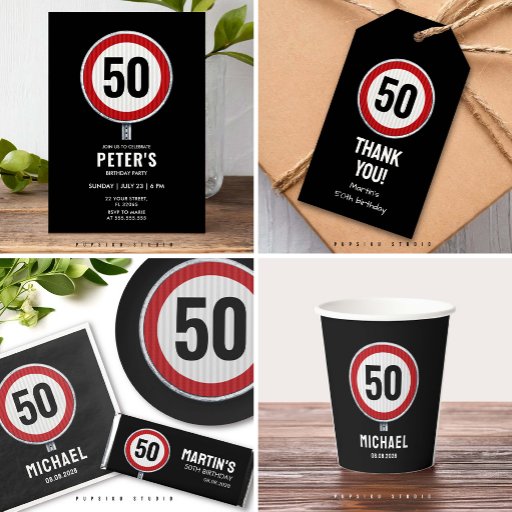 Sinal vermelho de velocidade do tráfego circular com um estilo gráfico moderno. Personalize a sua idade para os carros perfeitos e a festa de aniversário temática dos motoristas. Verifique a coleção correspondente para COORDENAR ITENS. Arte original de PUPSIKU STUDIO. 100% de produto exclusivo.