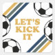 Adesivos de aniversário do futebol com faixas amarelas, verdes e marinhos azuis.