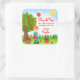 Adesivo Quadrado Aniversário Do Menino Vermelho Da Apple Pegando Ca