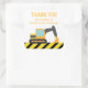 Um obrigado que você cola para decorar seus favoritos para festas e presentes! Ele apresenta um agitador de laranja e cinza, um padrão de listras inclinadas amarelas e pretas para fundo. Excelente para uma festa de aniversário de criança do tema da construção!
