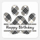 Adesivo Quadrado Aniversário, Tartan Xadrez Paw Imprime A Branco