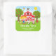 Adesivo Quadrado Aniversário Vermelho Fazenda Menina Cabelo Loiro O