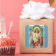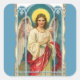 pintura em vintage de um anjo com uma fita vermelha grande, deliciosa fumaça branca com aparas de ouro e mãos juntas em oração