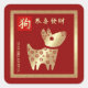 Adesivo Quadrado Ano Chinês do Cachorro Vermelho Dourado