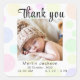 Adesivo Quadrado Anúncio do bebê, obrigado, Script Clássico Ronda