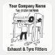 Promova seu negócio de equipamento de escape e pneumáticos. Torná-lo pessoal adicionando o nome da sua empresa e o número de telefone.