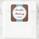 Personalize esses adesivos elegantes de chocolate e aqua empoeirados para atender às suas necessidades, mudar o texto etc... Use estes adesivos para uma padaria, negócio, cozedura, cozinha, comidas, sacos de presente, favoritos para festas, favores de casamento, chá de panela, casamento, etc...O design é da arte original.