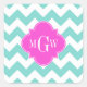Adesivo Quadrado Aqua White Chevron Quatrefoil Rosa Quente 3 Monogr