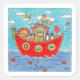 Esta bela impressão de uma ilustração de caneta e aquarela de Helen McCartney Designs mostra um grupo de animais doces amontoados a bordo da Arca de Noah.