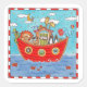 Esta bela impressão de uma ilustração de caneta e aquarela de Helen McCartney Designs mostra um grupo de animais doces amontoados a bordo da Arca de Noah.