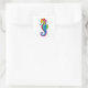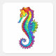 Articulação artificial, brilhante, arco-íris, cavalo de mar poligonal sobre fundo branco. Tatuagem brilhante.
