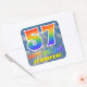 Este design de etiqueta de aniversário empolgante, divertida e atraente apresenta um plano de fundo azul-céu turvo, um grande número "57" e "FELIZ BIRTHDAY", ambos tendo um espectro multicolorido de arco-íris inspirado em gradiente e um nome editável. Bens engraçados e coloridos como este podem ser dados como um presente para alguém que está celebrando seu 57º aniversário. [~Z0000374]