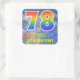 Este design de adesivo, vibrante e entusiasmante, com tema de aniversário, apresenta um fundo azul-turvo do céu, um grande número "78" e "FELIZ BIRTHDAY", ambos tendo um espectro multicolorido de arco-íris inspirado em gradiente e um nome personalizado. Tímulos divertidos e coloridos como este podem ser usados ao embrulhar presentes que são dados em comemoração do 78º aniversário de alguém. [~Z0000374]