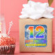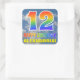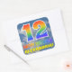 Este design de adesivo com temas oculares, divertidos e vibrantes no aniversário apresenta um plano de fundo azul-céu turvo, um grande número "12" e "FELIZ ANIVERSÁRIO", ambos tendo um espectro multicolorido de arco-íris inspirado em gradiente, e um nome personalizável. Os adesivos felizes e divertidos como este podem ser dados como presente a alguém que comemora o seu aniversário de 12. [~Z0000374]