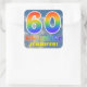 Este design de adesivo, vibrante e entusiasmante, com tema de aniversário, apresenta um fundo azul-turvo do céu, um grande número "60" e "FELIZ BIRTHDAY", ambos tendo um espectro multicolorido de arco-íris inspirado em gradiente, e um nome personalizável. Tímulos coloridos e felizes como este podem ser usados ao embrulhar presentes que são dados a alguém que comemora seu sexagésimo aniversário. [~Z0000374]