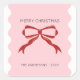 Este design apresenta adesivos de Natal modernos com um fundo cor-de-rosa macio e um arco profundamente desenhado pela mão vermelha. Personalize com o nome da sua família.
