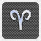 Um cromo prateado como o símbolo Aries zodiac em um fundo impressão de design de textura de fibra de carbono. Um design moderno urbano para uma ideia personalizada de presente de aniversário de excelente. Designs de bordados estão disponíveis em uma seleção de opções populares de cor. Use o link "Perguntar a este Designer" para entrar em contato conosco com suas solicitações especiais de design ou para obter assistência com suas necessidades de personalização.