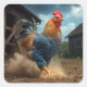Adesivo Quadrado Arranhando Galo em um Quintal Derramado