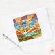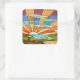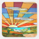 Vinheta quadrada com uma imagem de uma cena pastoral colorida de vidro corado em Art Deco, de colinas rolantes e sol brilhante. Veja confetti correspondente, bolsa de favor, etiqueta de favor e papel de embrulho. Veja toda a coleção de adesivos Roaring 20s nos CONVITES | Seção Stickers & Labels