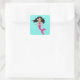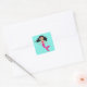Cartoon de arte rosa de sereia de uma gira-sereia com cabelo preto e uma cauda cor-de-rosa sobre um fundo de cor personalizável.