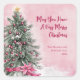 Uma adorável pinheiro verde na floresta, todos vestidos com bolhas de Natal cor-de-rosa, poinsettia decorativa e fita. Quem imaginaria essa visão mágica na neve? Claro que esta árvore de férias baleares brancos deve aparecer com um fundo rosa glorioso enquanto a neve cai. Nossa cena imaginária é de um design de aquarela vintage e vem com a saudação, "Que você tenha um Natal muito feliz" em texto rosa que pode ser editado. Certifique-se de alterar os nomes de exemplo e a data para aqueles que deseja. O design é demonstrado num autocolante quadrado, que se apresenta bem. No entanto, funciona bem e bonito na etiqueta redonda se preferir essa forma.