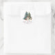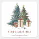 Este elegante adesivo de árvore de Natal apresenta duas árvores de Natal enfeitadas com ornamentos de vidro e cercadas por presentes envoltos. Personalize o adesivo adicionando seus Cartões de natal, nome da família e o ano.