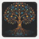 Esta imagem mesmerizante apresenta uma bela árvore mosaica desenhada contra um fundo escuro e intrincado. Os ramos da árvore são enfeitados com um conjunto de folhas e flores coloridas em tons de azul, laranja, amarelo e verde, criando um contraste impressionante com o pano de fundo preto. Os padrões giratórios do tronco e das raízes adicionam uma energia dinâmica e fluente à peça, enquanto a borda espelha o vibrante design ornamentado da árvore. Essa trabalho de arte combina perfeitamente elementos da natureza e fantasia, resultando em uma obra-prima visual cativante.