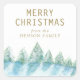 Adesivo Quadrado Árvore Natal Aquarela Floresta Neve Artística