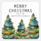 Árvore Festiva de Natal Aquarela Merry Christmas Family Sticker. Desenho artístico de aquarela de uma colorida árvore de Natal com neve e um desejo Feliz de Natal. Adicione seu texto e nome da família.