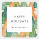 Etiqueta do adesivo Feliz Feriados. Uma design de Natal padrão de árvore de Natal minimalista e simples e multicolorida.