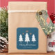 Vestido de Natal moderno com árvores e estrelas bonitinhas. Feliz Natal é definido em uma fonte de script manuscrita caprichosa. Personalize este adesivo de Natal com o seu nome de família.