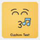 Um emoticon assobiando com olhos sorridentes e uma nota musical. Texto personalizado.