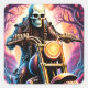 um esqueleto preso na bicicleta do pandemônio. Andando pelos galhos entrelaçados na trilha. Ele tinha um salto. Ele tem uma calça preta de couro e botas de motocicleta e uma jaqueta de couro preto com osso como um design na roupa de bilker. Com o sol descendo atrás dele. Haze ascensão do seu redor para a noite escura que ele se deita com estrelas noturnas acima.
