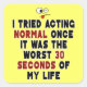 A frase "Eu tentei agir normalmente uma vez, foram os piores 30 segundos da minha vida"