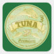 Uma ilustração do estilo pop da tampa de uma lata de atum. Este é desenhado em vetor e tem a aparência de um poster de publicidade retrógrada. Tem atum e é desenhado em tempos de verde e amarelo. Um design para qualquer um que ama peixe enlatado/conservado.