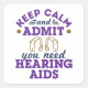Um presente de audiologia engraçado para o audiólogo. Design diz: "Fique calmo e admita que precisa de aparelhos auditivos."