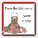Urso de pelúcia bonito em um avental sobre autocolantes personalizados. Da cozinha de... seu nome.