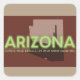 Stickers Quadrados, Glossy ARIZONA SPIRIT - Espírito de Arizona é um gráfico para uma lembrança para visitantes do Estado ou para aqueles que têm saudades de casa e que perdem o deserto. A silhueta do cacto é de uma foto que tirei, então manipulei e coloquei em uma mão desenhada no mapa do AZ. O texto tem um efeito néon, vivo e o fundo tem a cor original da placa de licença de marrom/ferrugem. O ditado diz, "Arizona, Reúna seus sonhos, deixe seu espírito guiar você."